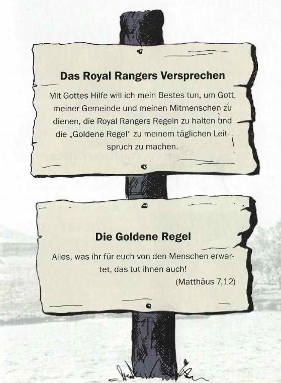 - Der Ranger sagt die Goldene Regel und das Royal Rangers Versprechen auf.