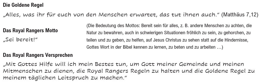 Geistlich: Als Royal Rangers wollen wir die christlichen Glaubenswerte kennenlernen und danach leben.
